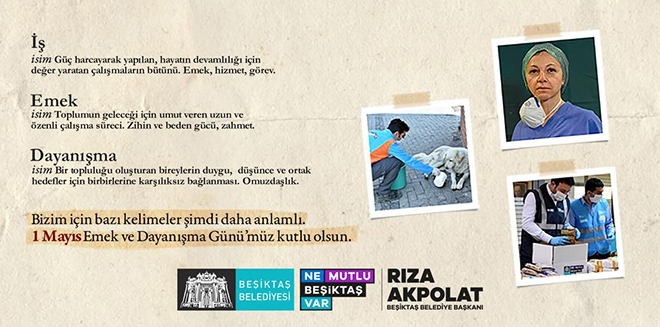 Beşiktaş Belediyesi, 1 Mayıs Emek ve Dayanışma Günü için hazırladığı çalışmalarda Koronavirüs salgınıyla birlikte anlamları daha da güçlenen “iş, emek ve dayanışma” kavramlarına vurgu yaptı.