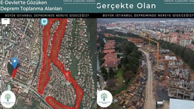 İktidar, deprem toplanma alanlarının imara açıldığını reddetse de son şu an Eyüpsultan Göktürk'te devam eden ve kamuoyunda tartışma yaratan lüks konut inşaatı bunun aksini gösteriyor.