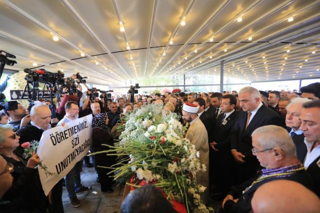 “Değerli dostlar, başımız sağ olsun. Hem kıymetli ailesinin hem tiyatronun hem sanat dünyamızın, İstanbul’umuzun, devletimizin, milletimizin başı sağ olsun. Yüz yılın bir abidesini kaybettik ama bu insanlar kaybolmaz. Çünkü zihinlerde bir yıldız olarak kalırlar. Yıldız Kenter, öyle birisiydi. Anadolu’da çok özel, saygın kadınlar tarihler boyu var olmuştur. Yıldız Kenter de Anadolu’nun yetiştirdiği en saygın, en özel kadınlardan biri olarak tarihe geçmiştir. Hatta simgedir. Belki de ‘Ben Anadolu’ oyununun simgesi olarak, o çok istediği oyunun varlığıyla kendisini ifade etmiştir diye düşünüyorum. Bu güzel toprakların ruhunu yansıtan bir insandan bahsediyoruz. Hayatını tiyatroya adamış, sanata adamış, bu ülkeye adamış bir insandan bahsediyoruz. Dolayısıyla bu güzel tiyatronun varlığını bize emanet etmiş birinden bahsediyoruz.”