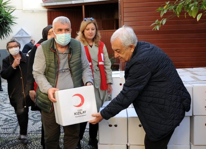 Kızılay, temel ilkesi olan din, dil, ırk ayrımı gözetmeksizin insanlara yardım eli uzatma gayesi ışığında gerçekleştirilen Ramazan ayı dolayısıyla 14 Nisan'da şube Başkanı sayın Sıddık DOĞAN, kadın kolları başkan yardımcısı sayın Ülkü BENLİSOY, şube yönetim kurulu üyeleri ve gönüllülerin katılımı ile Beşiktaş Rum Ortodoks Kilisesi Vakfı ve kilise başkanı sayın Dino BELALİDİS ziyaret edilerek; ihtiyaç sahiplerine Beşiktaş Rum Ortodoks Kilisesi Vakfı avlusunda ramazan kolileri dağıtıldı.