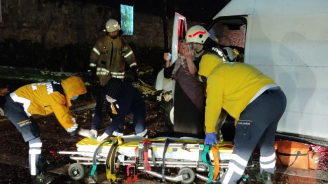 Çarpmanın etkisiyle minibüsün üstüne düşen ağaç ve direk nedeniyle araç içinde bulunan Emine Öztürk isimli kadın yaralandı. Kazanın olduğunu gören vatandaşlar durumu polis ve itfaiye ekiplerine haber verdi. İhbar üzerine olay yerine gelen itfaiye ekipleri, kadını sıkıştığı yerden çıkararak sağlık ekiplerine teslim etti.