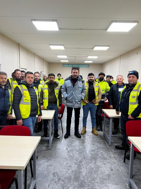 "Kriz Merkezimizdeki değerlendirmelerimizin ardından, vardiya değişimindeki emekçilerimizle bir araya geldik. Aşevimizde sıcak yemeklerimiz hazırlanıyor, sokaklarımızdaki ihtiyaçları anlık olarak karşılıyoruz. Komşularımız için çalışmalarımız hız kesmeden devam ediyor."