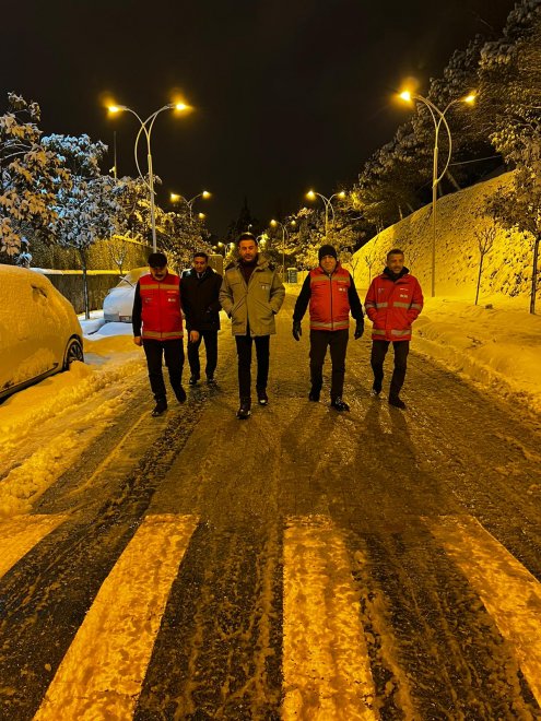 Başkan Akpolat, vatandaşlara Twitter hesabından uyarılarda bulunarak, "Emekçilerimiz karla mücadele çalışmalarına gece gündüz demeden devam ediyor. Komşularımızdan zorunlu olmadıkça trafiğe çıkmamalarını rica ediyorum. Tüm talepleriniz için Çözüm Merkezimizi 7/24 arayabilirsiniz. 444 44 55" ifadelerini kullandı.