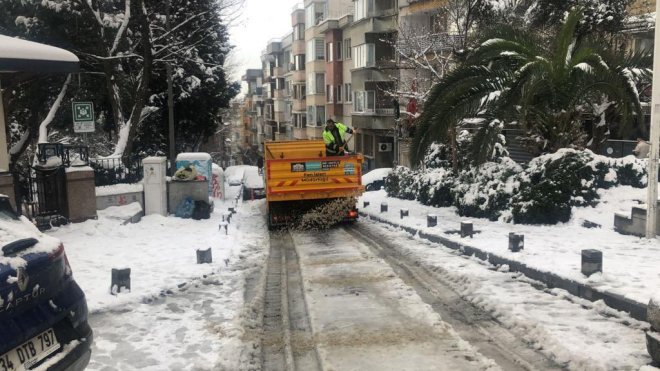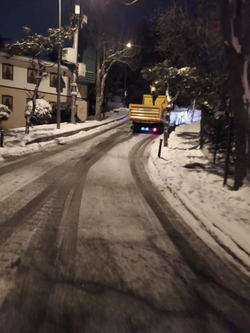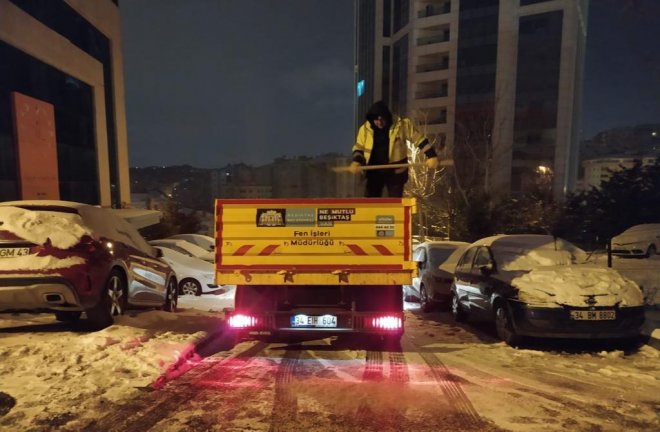 "Günaydın Beşiktaş. Karla mücadele ekiplerimiz çalışmalarına gece boyunca devam etti. Emekçilerimiz İBB ekipleriyle koordineli şekilde ana arter, ara sokaklarda küreme ve tuzlama çalışmalarını yoğun şekilde sürdürüyor. Lütfen zorunlu olmadıkça trafiğe çıkmayalım."