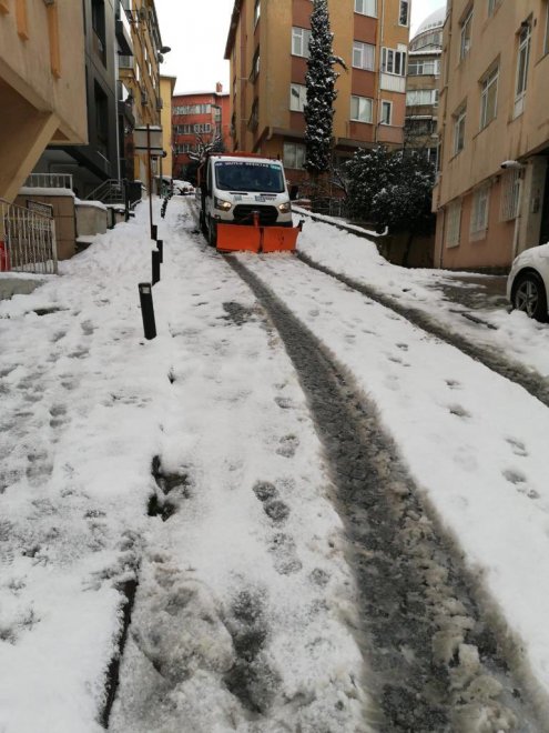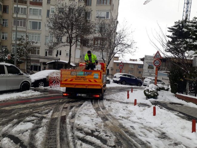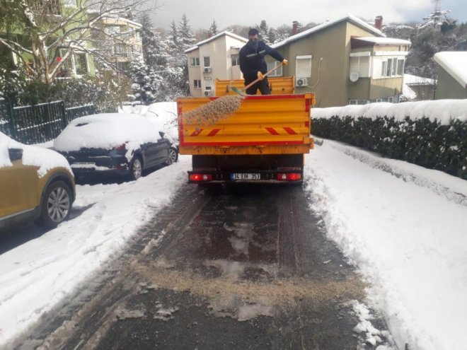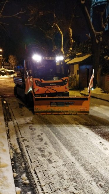Beşiktaş Belediyesi ekiplerinin karla mücadele çalışmalarından kareler: