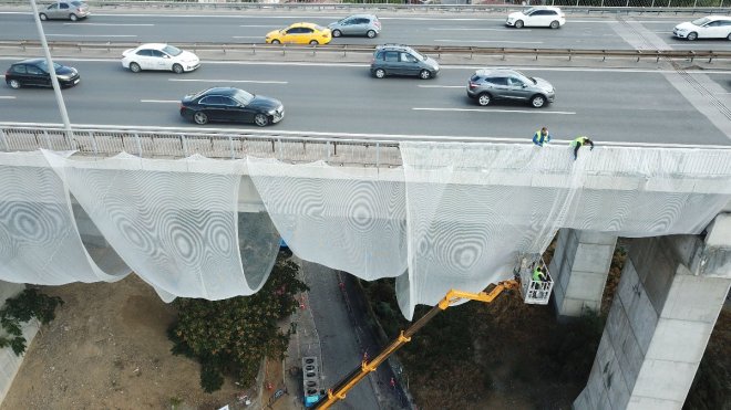 İstanbul’da Ortaköylülerin, 15 Temmuz Şehitler Köprüsü Ortaköy Viyadüğü’nden parça kopması ve araçlara zarar vermesi şikayeti üzerine yetkililer harekete geçti. Karayolları Genel Müdürlüğü ekipleri, Ortaköy Viyadüğü altına file germe çalışması başlattı. Filelerle kopan parçaların yere düşmesi engellenirken, viyadükte tadilat çalışmalarının da en kısa sürede başlayacağı öğrenildi.
