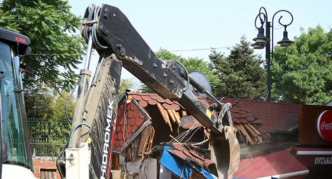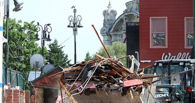 Sokağın çökmesinin ardından boşaltılan dükkanların yıkımına başlandı. Belediye ekipleri bir yandan dükkanları yıkarken diğer yandan da enkaz kaldırma çalışmalarını sürdürdü.