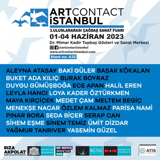 "24 sanatçımızla ArtContact İstanbul Çağdaş Sanat Fuarı’nda yerimizi alıyoruz. 01-04 Haziran tarihleri arasında Dr. Mimar Kadir Topbaş Gösteri ve Sanat Merkezi’nde düzenlenecek olan ArtContact İstanbul Çağdaş Sanat Fuarı'na tüm sanatseverleri bekleriz. Yeni keşiflere, ilham verici deneyimlere ve paylaşımlara hep birlikte katılalım."