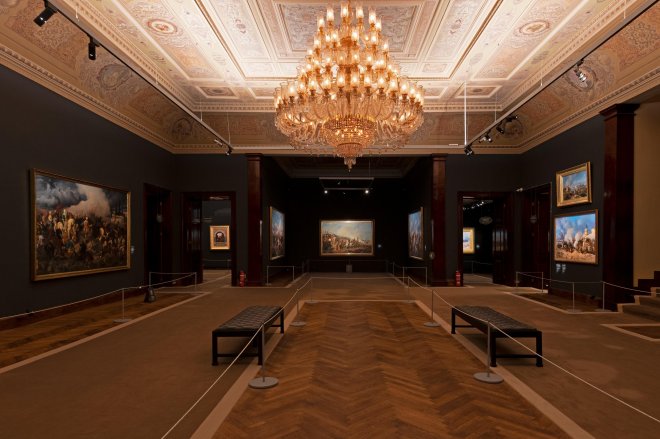 “Sultan Abdülmecid ve Sultan Abdülaziz Salonu”, “Devlet-i Aliyye”, “SalvatoreValéri”, “Ressâm-ı Hazret-i Şehriyârî”, “İvan Konstantinoviç Ayvazovski Salonu”, “Emilio Della Sudda”, “Osman Nuri Paşa”, “Süleyman Seyyid”, “Türk Hamam Kültürü”, “Halil Paşa”, “Osmanlı’nın İhtişamı”, “(Şeker) Ahmed Ali Paşa”, “Abdülmecid Efendi’nin Atölyesinden İzler”, “Abdülmecid Efendi”, “Osman Hamdi Bey”, “(Hoca) Ali Rıza”, “Hüseyin Zekâi Paşa”, “Goupil Galerisi’nden”, “Hayal İstanbul”, “Osmanlı Hanımefendileri”, “Mustafa Kemal Atatürk”, “Hâne-i Saâdet”, “Tasvîr-i Hümâyûn Salonu”, “Osmanlı Donanması”, “Savaşlar ve Zaferler I ve II”, “Savaşlar ve Zaferler Salonu”, “Fetih ve Fatih”, “Abdülmecid Efendi’nin Atölyesi”, “Doğu’ya Dair”, “Osmanlı Sarayında Manzara”, “Enderûnlu Ressamlar”, “Osmanlı Bürokrasisi”, “Sûretler” ve “Çanakkale.”