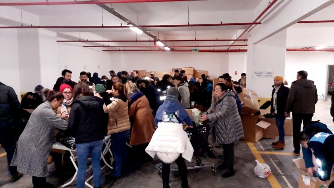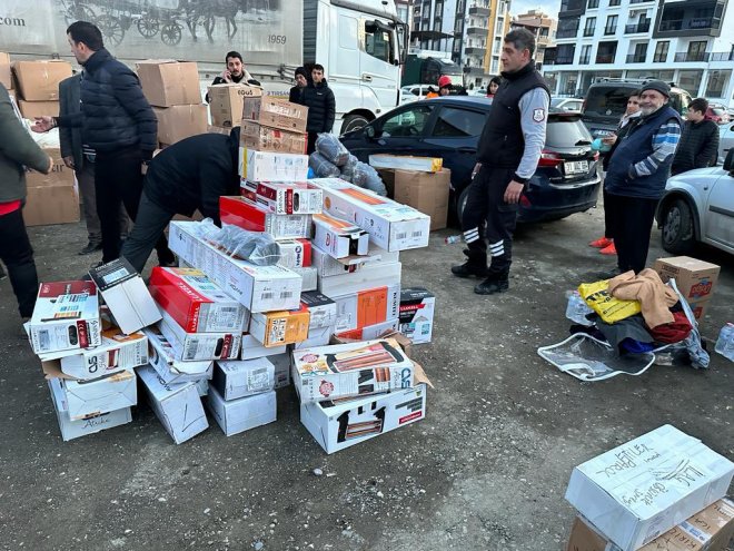 Uzun süre dayanıklı gıda ürünlerinden uyku tulumuna, battaniyeden hijyenik malzemelere kadar depremzedelerin acil ihtiyaç duydukları ürünler kolilere yerleştirilip tırlara yüklendi. Tıra yüklenen koliler yerel görevlilerinin destek olmasıyla akşam saatlerinde afet bölgesine ulaşmak üzere yola çıktı.