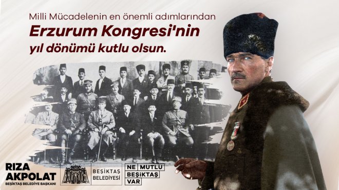 "”Milli sınırlar içinde vatan, bölünmez bir bütündür, parçalanamaz.” kararıyla Cumhuriyetimizin temellerinin atıldığı Erzurum Kongresi'nin 103. yıl dönümünde Büyük Önder Mustafa Kemal Atatürk ve silah arkadaşlarını saygı, minnet ve özlemle anıyorum."
