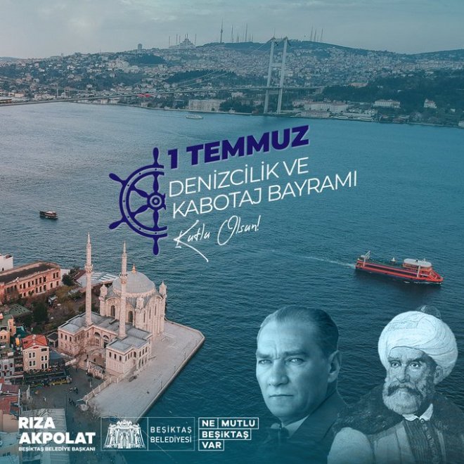 Beşiktaş Belediye Başkanı Rıza Akpolat, 1 Temmuz Denizcilik ve Kabotaj Bayramı'nı "Denizlerimizdeki ve limanlarımızdaki hâkimiyet ve bağımsızlığımızın sembolü olan 1 Temmuz Denizcilik ve Kabotaj Bayramımızın 96. yıl dönümü kutlu olsun." ifadeleriyle kutladı.