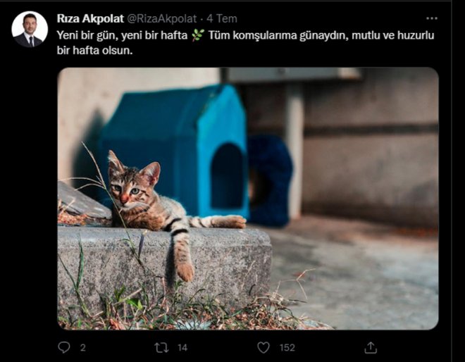 "Yeni bir gün, yeni bir hafta... Tüm komşularıma günaydın, mutlu ve huzurlu bir hafta olsun."