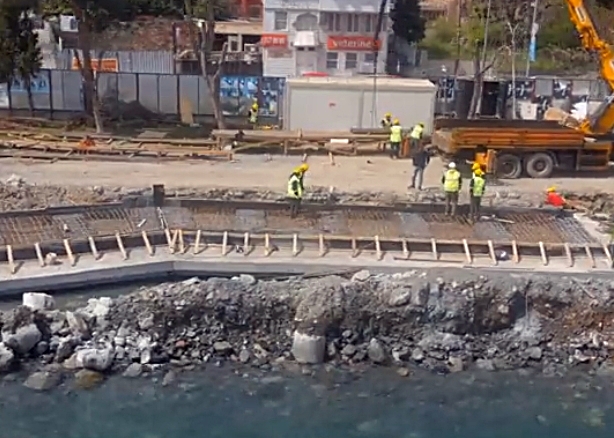 Kuruçeşme Sahil Parkı'nda ise; güçlendirme çalışmaları devam ediyor.
