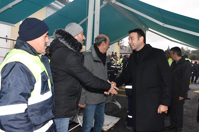 "Beşiktaş Belediye Başkanı Rıza Akpolat 2019’u geride bırakacağımız bu son günlerde belediye birimlerine yeni yıl ziyaretlerini sürdürüyor. Başkan Rıza Akpolat bugün sahada çalışan Temizlik ve Fen İşleri personeliyle bir araya gelerek çalışanların yeni yılını kutladı. Yağmur çamur demeden Beşiktaş halkına hizmet vermek için özverili bir şekilde çalışan mesai arkadaşlarına, çalışmalarından dolayı teşekkür ederek yeni yılın herkese sağlık, huzur ve mutluluk getirmesini diledi.