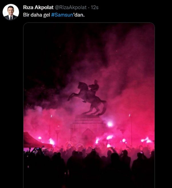 İstanbul Büyükşehir Belediye Başkanı Ekrem İmamoğlu da, #Samsun etiketi ile anıtın olduğu meşaleli fotoğrafı paylaştı. Paylaşımı binlerce kişi tarafından beğenildi ve yeniden paylaşıldı.