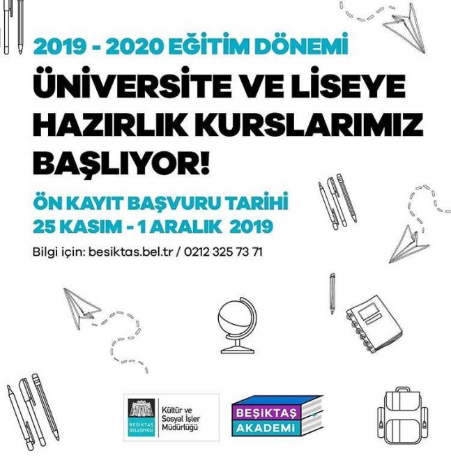 Beşiktaş Akademi'ye Lise yerleştirme sınavına hazırlanan 8. sınıf öğrencileriyle üniversite yerleştirme sınavına hazırlanan 12. sınıf öğrencileri ve mezunlar kabul edilecek. Üniversite yerleştirme sınavına hazırlanan öğrenciler sayısal ve eşit ağırlık olmak üzere iki farklı dalda sınava hazırlanabilecek. Lise sınavlarına hazırlanan öğrencilere hafta sonu sabah ve öğlen olmak üzere iki grupta eğitim verilecek. Üniversiteye hazırlanan mezun öğrenciler hafta içi, 12. sınıf öğrencileri ise hafta sonu derslerine devam edecek. Kayıtlarda Beşiktaş'ta ikamet edenlere öncelik tanınacak. Derslerin 3 Aralık 2019 tarihinde başlayacağı Beşiktaş Akademi için ayrıntılı bilgiyi www.besiktas.bel.tr adresinden ve 0212 325 73 71 numaralı telefondan öğrenebilirsiniz.