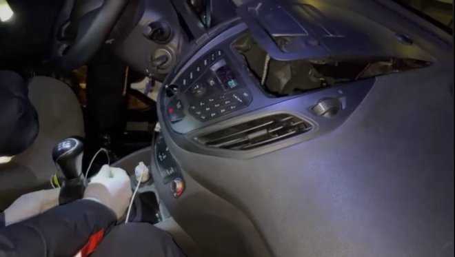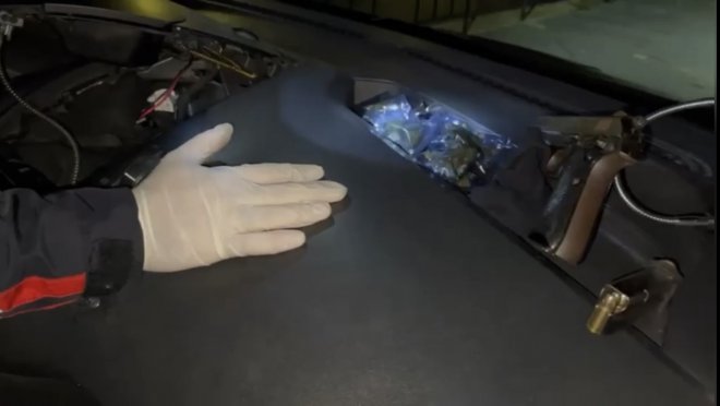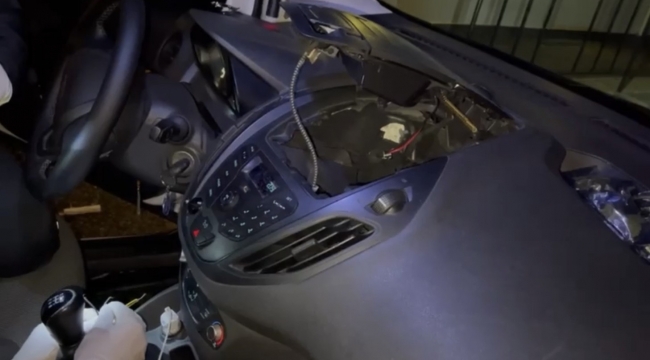 Aracın içerisinde arama yapan polis ekiplerinin dikkatini vites topuzundaki orijinalinden farklı olan kabloları çekti. Farklı kabloları deneme yanılma yöntemiyle birbirine temas ettiren yunus polisi, gördüğü manzara karşısında şaştı kaldı. Kabloların temas etmesiyle radyonun üst bölümünün raylı bir sistemle açıldığı ortaya çıktı. Zulanın içerisine bakan ekipler, ruhsatsız tabanca, şarjör, 42 adet mermi, 14 parça satışa hazır uyuşturucu madde, cep telefonu ve uyuşturucu ticaretinden elde edilen bin 630 lira ele geçirdi. Yapılan aramalar ise kameralara yansıdı.
