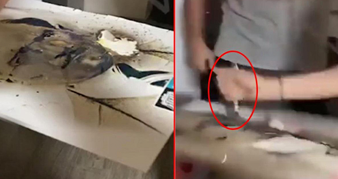 Elindeki postere art arda darbeler indirirken yanındaki arkadaşlarının da kahkahalar attığı yansıyan videoda, “Zaten çocuğu da yok, acımıyorum. En az 3 çocuk” dedikten sonra küfrettiği duyuluyor.