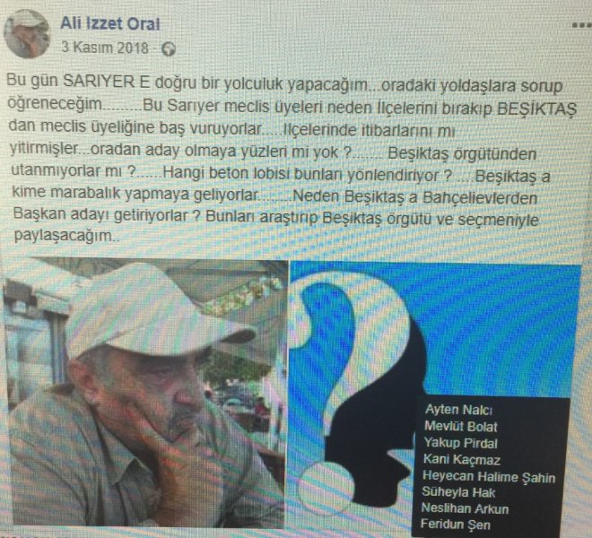 İşte Beşiktaş Belediyesi eski çalışlanı en yakın dostları ve birlikta hareket ettikleri Zabıta Ali İzzet Oral tarafından paylaşılan sosyal medyadan Rıza Akpolat adaylığı öncesi Erdoğan Toprak, İnan Güney ve Ekrem İmamoğluna yönelik paylaşımları...