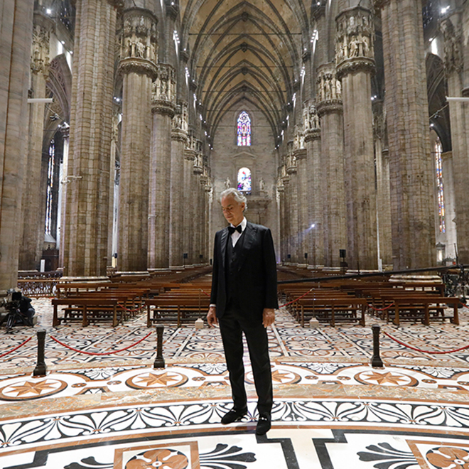 İtalyan tenör Andrea Bocelli hayatının en sıradışı performansını sergiledi. Milan'ın ikonik Duomo Katedrali'nde seyircisiz ancak Dünya'nın her yerinden insanların aynı anda canlı olarak bu duygusal ana tanıklık ettiği bu özel etkinlik YouTube üzerinden canlı yayınlandı ve tüm dünya evlerinde ayrı otururken insanları bir araya getirdi.