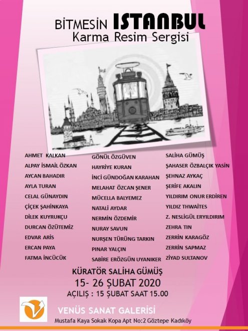 İstanbul'a dair söylenmiş, yazılmış, çizilmiş çok şey var. Onun için söylenecekler, yazılanlar, çizilenler bitmedi ve yaşam devam ettikçe de bitmeyecek!.. Küratörlüğünü Saliha Gümüş’ün yaptığı “Bitmesin İSTANBUL” sergisi 33 sanatçının katılımıyla 15 Şubat Cumartesi saat 15:00 de Venüs Sanat Galerisi’nde sanatseverlerle buluşuyor.