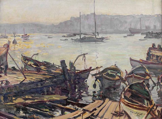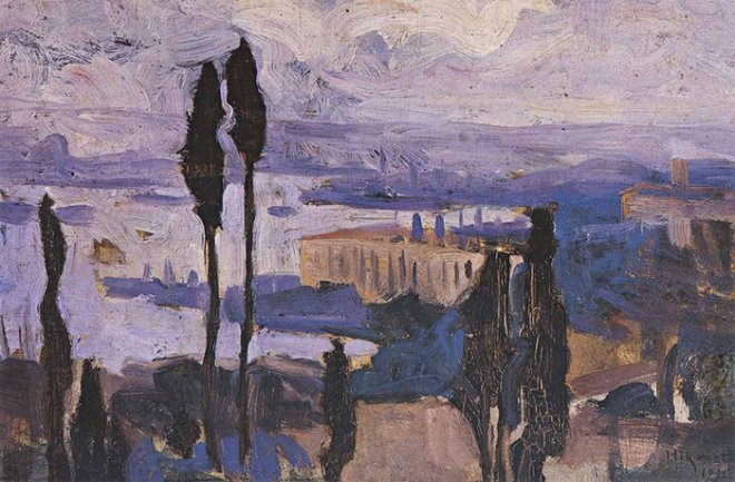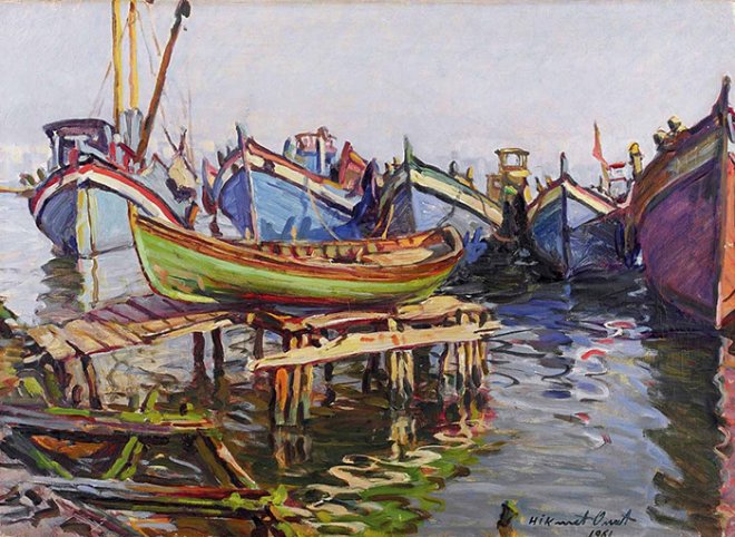 Hikmet Onat, ilk dönemlerinden başlayarak tüm hayatı böyunca İstanbul'un deniz kıyılarını, balıkçı kayıklarını ve kır görünümlerini renk ve ışık parlaklığıyla canlandırmıştır.