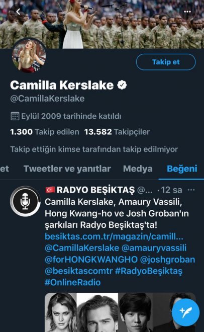 Sesi ve güzelliği ile herkesi büyüleyen dünyaca çapındaki İngiliz soprano Camilla Kerslake, Radyo Beşiktaş'ta şarkılarının müzikseverlerle buluştuğunu bildiren haberi beğendi.