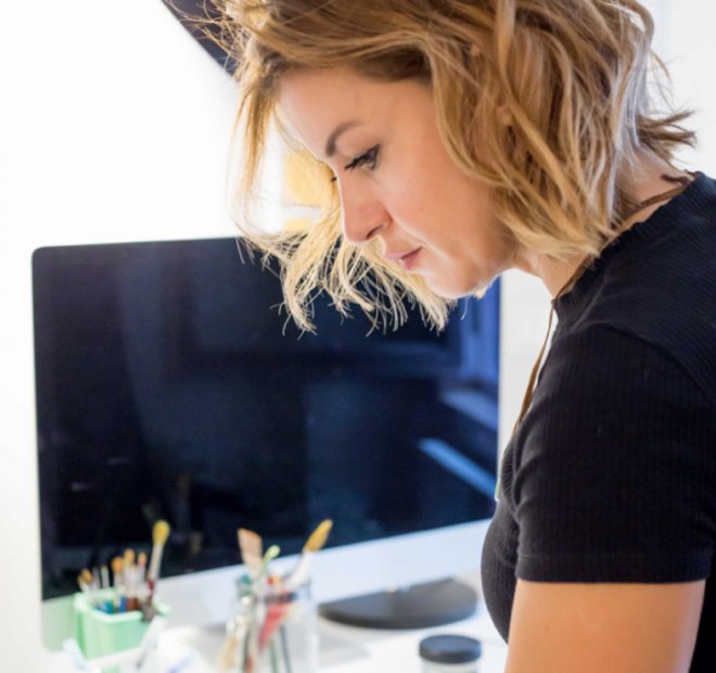 “Yapıtlarım dağınıklıktan arınmış basit tonlar, modern çizgiler, bazen monokrom / tek renge varan, pastel renkler ve yakın ton aralıklarından oluşan bir palet ile yalın bir tasarım yaklaşımı gösterir.