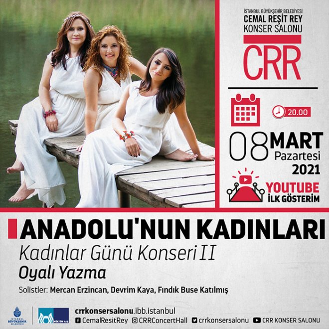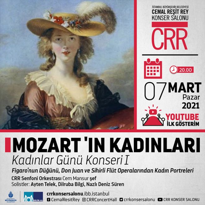 Cemal Reşit Rey(CRR) Konser Salonu, 8 Mart Dünya Emekçi Kadınlar Günü’nde “Mozart’ın Kadınları” ve “Anadolu’nun Kadınları” konserlerini CRR Youtube kanalından müzikseverle buluşturacak.