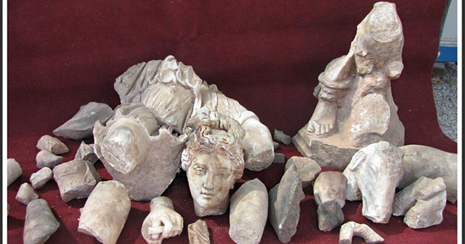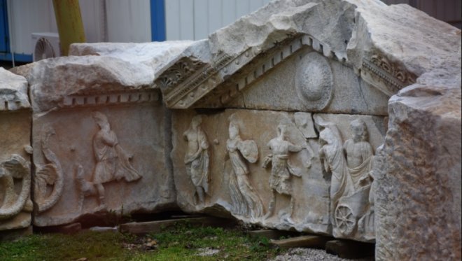 Artemis, Orpheus gibi tanrılar ile Hadrian ve Commodus gibi imparatorlara ait heykel parçaları ele geçmiştir. Bizans dönemindeki mimari daha derme çatma ve kendinden önceki muhteşem mimarinin üzerine yapılmış Dolayısıyla bir tahribat söz konusu.