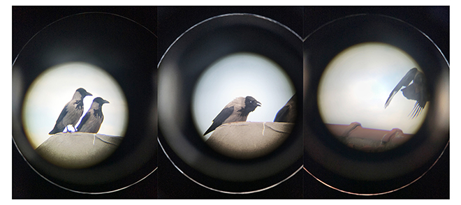 Yusuf Sevinçli: Bugünlerde sürekli yaptığım gibi salondaki koltuğumda sakin sakin otururken dışarıda gözüme takılan kargaları telefonum ve bir dürbün yardımıyla çektim. Salgın hakkında bir değerlendirme değil, fakat her şeyin duruyor hissi verdiği bir dönemde zamanın hâlâ aktığına dair küçük bir gözlem.