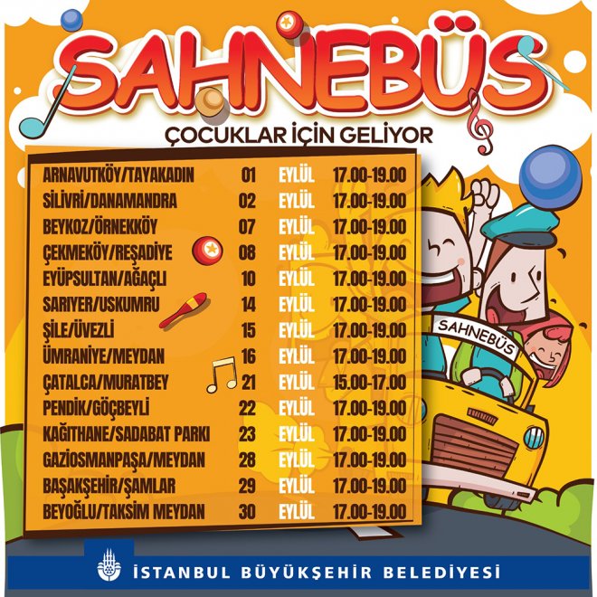 İstanbul Büyükşehir Belediyesi (İBB) Kültür Daire Başkanlığı’nın çocuklar ve ailelerini kültür sanatla buluşturmak için düzenlediği etkinlikler Eylül ayında da devam ediyor. Edinilen bilgilere göre; gezici platform SAHNEBÜS ile düzenlenen etkinlikler İstanbul’un gösteri alanlarına uzak bölgelerinde yaşayan çocukları kültür sanat etkinlikleri ile buluşturmayı amaçlıyor.
