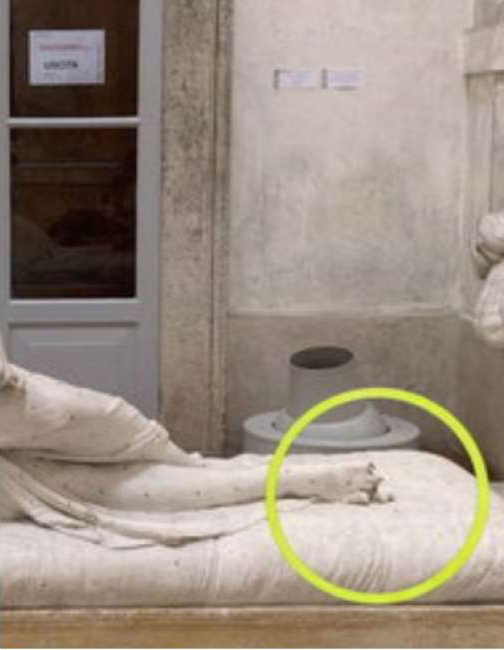 Müzenin açıklamasına göre, güvenlik görevlileri heykelin zarar gördüğünü birkaç dakika sonra fark ederek alarmı çalıştırdı. Kamera kayıtlarının incelenmesi sonucu, Avusturyalı bir turist kafilesinde yer alan bir kişinin, selfie çekmek için heykelin üzerine oturduğu belirlendi.