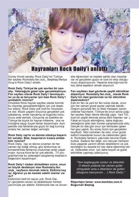 Beşiktaş Medya Grup 2020 Özeti ekinde Güney Koreli sanatçı Rock Daily'nin Türkiye fan sayfası Rockdaily.fan.club_ ile yapılan röportaj şu şekilde yer aldı: