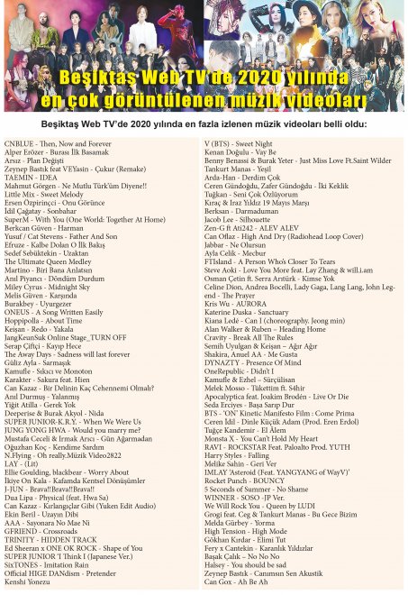 İşte Beşiktaş Web TV'de en fazla izlenen müzik videoları: