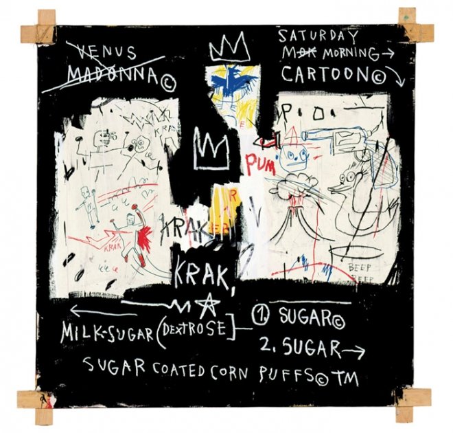 Andy Warhol, Pablo Picasso, Robert Rauschenberg, Jean Dubuffet gibi isimlerden etkilenen Jean-Michel Basquiat, Beat yazarlarının kesme tekniğini temel alan sanatsal tekniği ile resimlerinin yüzeylerinde sayılar, çizgiler, alıntılar, indeksler, vektörler, diyagramlar ile oluşturuyordu. Sanatının ana merkezi olan nokta, çalışmalarında yer verdiği Leonardo da Vainci’nin kod çizgileri, Pablo Picasso, Henri Matisse, ansiklopedileri, yıldız tablolarına yaptığı göndermeler bulunuyordu.