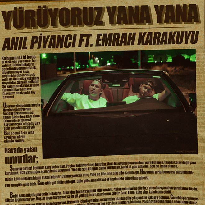 Son yılların en çok sevilen ve dinlenen rap sanatçılarından olan Anıl Piyancı, uzun yıllardır birlikte şarkılar yayımladığı Emrah Karakuyu ile yeniden bir araya gelerek “Yürüyoruz Yana Yana”yı Universal Music Türkiye etiketiyle müzikseverlerle paylaşıyor.