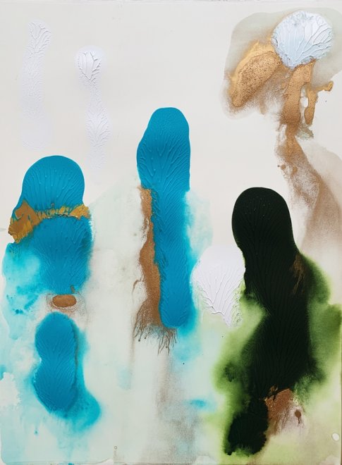 “We Should Meet in Water, You and I” serisi ise konseptini suyun iletkenliğinden, saflığından ve temizliğinden alıyor. Bu alıntıyı bir metafor olarak kullanıp ilişkilerin saf, temiz, direkt ve her şeyin açıkça konuşulabildiği bir platform olması gerekliliğine işaret ediyor. Bu konsepti çok daha akışkan bir doku ile yeşil ve mavinin tonlarının ağırlıkta olduğu kompozisyonlarla sanatseverlere sunuyor.