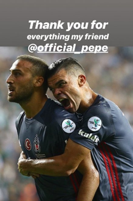 Geçtiğimiz gün siyah-beyazlı kulüpten ayrıldığı resmi olarak da Beşiktaş JK’nin sitesinden açıklanan Pepe’nin ayrılığı hakkında Cenk Tosun sosyal medya hesabından paylaşımda bulundu. Beşiktaş’ın eski futbolcusu Cenk Tosun, instagram hesabında hikayesinde Pepe ile maç esnasında çekilmiş olan bir fotoğrafını paylaşarak üzerine “Thank you for everything my friend” (Her ley için teşkkürler arkadaşım) yazarak Pepe’nin adını etiketledi.
