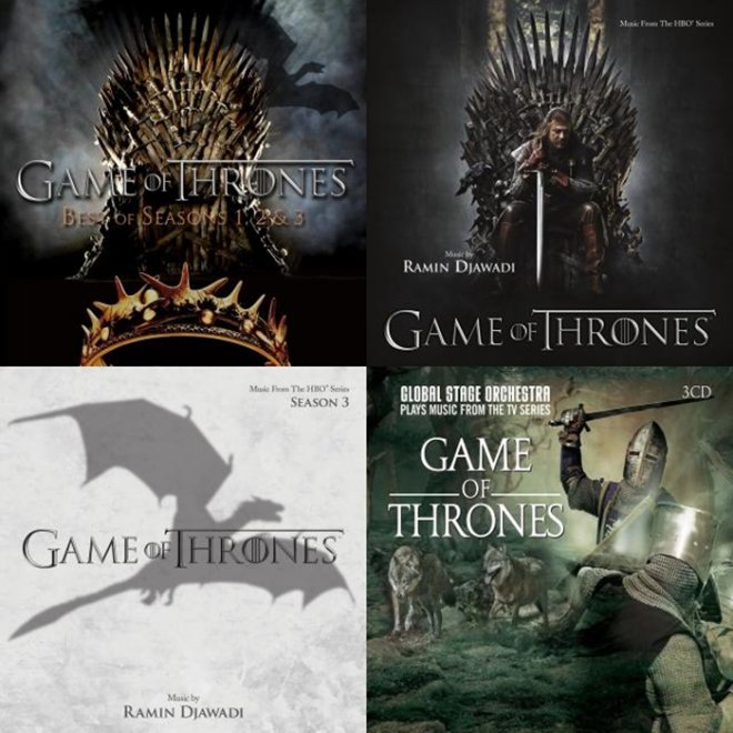 Ramin Djawadi imzalı HBO tarafından oluşturulan müziklerin bulunduğu ve her ailenin Game of Thrones yolculuğunu anlatan 7 farklı çalma listesine aşağıdaki linklerden ulaşabilirsiniz.