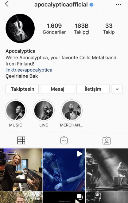 Apocalyptica resmi Instagram hesabı: @apocalypticaofficial