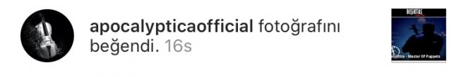 Metal müzik alanında dünya çapında pek çok başarılı grubun yer aldığı Finlandiya'nın Apocalyptica isimli grubu Beşiktaş Medya Grup'un Instagram'da yaptığı paylaşımı beğendi.