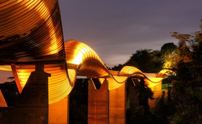 Singapur üzerinden dolandırılarak Mount Faber Park’ı Telok Blangah Hill Park’a bağlayan bu yapı, özellikle ışık saçan görünümü ile en çok karanlıktan sonra ziyaret ediliyor. RSP Architects Planners & Engineers Pte Ltd and IJP Corporation tarafından tasarlanan köprü, 274 metrelik bir yılana benziyor ve yukarı doğru eğrilerinde sığınaklar oluşturan Balau ahşabından ve kıvrımlı çelik kaburgalardan inşa edildi.