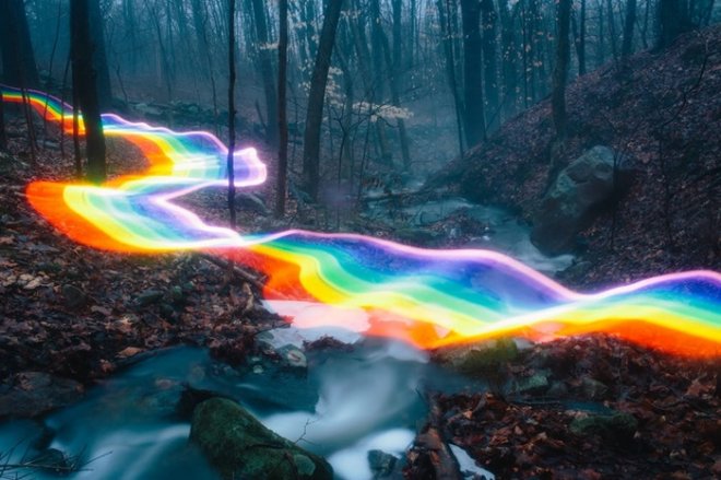 Film yapımcısı Daniel Mercadante, uzun pozlama fotoğraf serisi Rainbow Road ile manzaraları büyülü mekanlara dönüştürüyor. Fotoğraflarda rengarenk bir neon gökkuşağı manzarayı aydınlatıyor. Sessizce tepelerin, yolların, ormanın, sokakların, sahillerin, kayalık vadilerin, barakaların, göllerin etrafında dönerek yaşamı ele geçiriyor. Kasvetli kış manzaralarına gökkuşağı ile sıcaklık ve renk katan sanatçı Mercadante’nin Rainbow Road serisindeki fotoğraflar neredeyse hiç düzenleme gerektirmiyor.