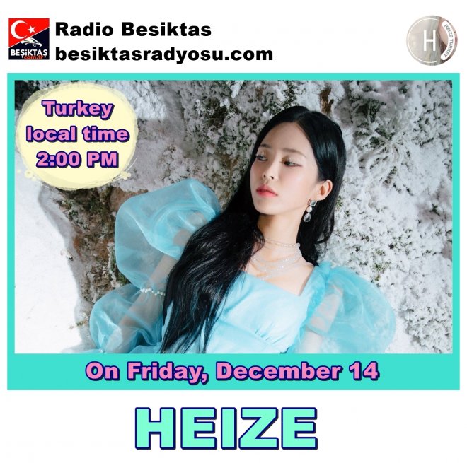 Güney Koreli şarkıcı, rapçi, söz yazarı ve besteci olan 1991 doğumlu Heize, önümüzdeki hafta kış geri dönüşünü gerçekleştirecek. Heize’nin Türk hayran sayfası HEIZE TURKEY ve Radyo Beşiktaş işbirliği ile sanatçının yeni single’ı "At First Sight"a özel yayın yapılacaktır.
