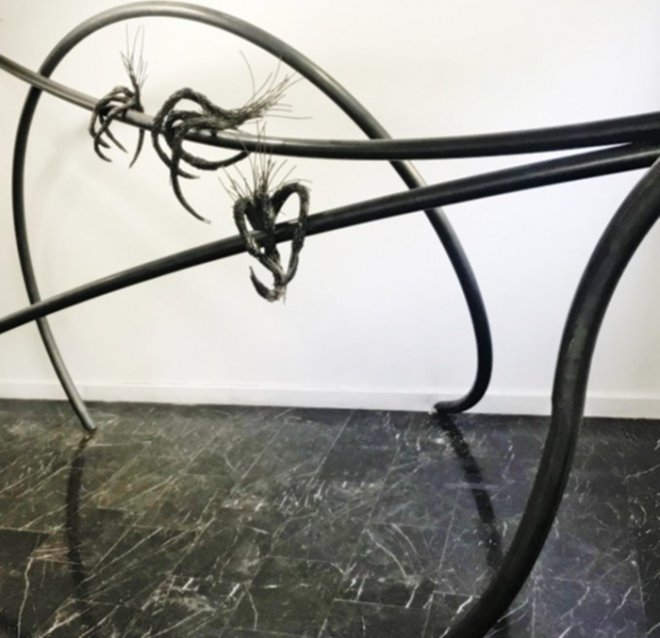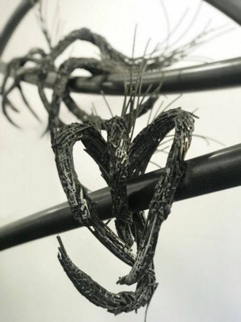 Tüm bu eylemleri gerçekleştiren “gaga” ve “tırnak” oldukça güçlü, tehditkar ve sağlam bir yapı ile izleyiciye sunuluyor. Galeride mekanla bütünleşir şekilde yerleştirilmiş olan eser, adete mekanda yön duygusunun kaybolmasına, mekan içinde özne ile nesne ilişkisinin belirsizleşmesine, böylece izleyicinin galeri mekanının işgaline tanıklık edebilme duygusunu oluşturuyor.