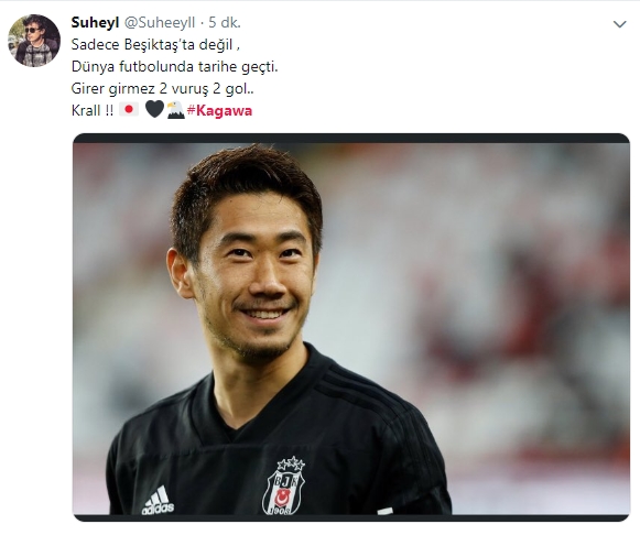 Spor Toto Süper Lig'in 20. haftasında Beşiktaş, Antalyaspor'u 6-2 olarak büyük bir farkla yendi. Siyah-beyazlı takımın harika performansı dikkatleri çekerken, maçın 81. dakikasından sonra öyle bir mucize yaşandı ki, herkes büyülendi. Siyah-beyazlı taraftar ve camia, Japon yıldız Shinji Kagawa'nın 82. ve 84. dakikalarında attığı iki muhteşem gol ile sevinçten çıldırdı. Sadece Beşiktaş değil, tüm Japon basını da Kagawa'nın yaptığı muhteşem başlangıçtan coşkuyla bahsetti. İşte o paylaşımlar:
