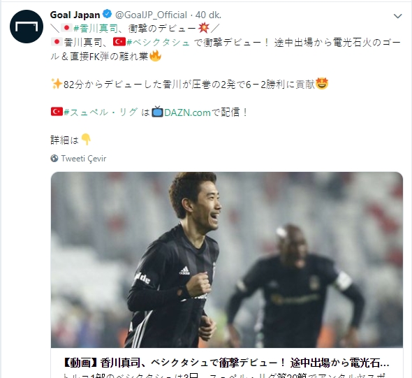 Japon haber sitesi Soccer King, "Kagawa Shinji, Beşiktaş'ta harika bir başlangıç yaptı! İlk görünümde iki dakikada iki gol" şeklinde yazdı.