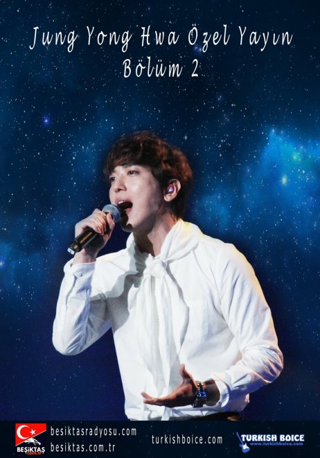 Güney Kore’nin önde gelen müzik gruplarından birisi olan CNBLUE’nun ana vokali, gitaristi, söz yazarı ve aynı zamanda grubun lideri olan Jung Yong Hwa’ya özel olarak Radyo Beşiktaş’ta yayın düzenlendi. Jung Yong Hwa özel yayınında keyifli dakikalar geçiren dinleyiciler de istek parçaları ile yayına katıldılar. Zamanın su gibi akıp geçmesi ile Jung Yong Hwa’nın sesine doyum olmadı. Bu nedenle, Radyo Beşiktaş’ta 10 Ekim Çarşamba günü saat 12:00-13:00 arası “Jung Yong Hwa Özel Yayın Bölüm 2” başlığı altında, sanatçı için birinci yayının devamı niteliğinde ikinci bölüm yayınlanacak.